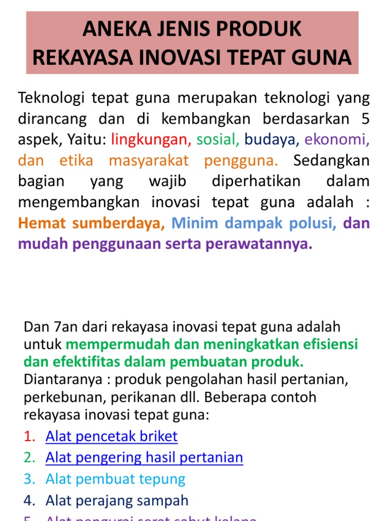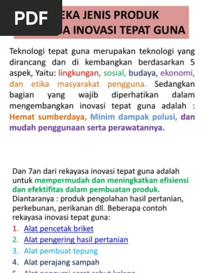 Aneka Jenis Produk Rekayasa Inovasi Tepat Guna Pdf